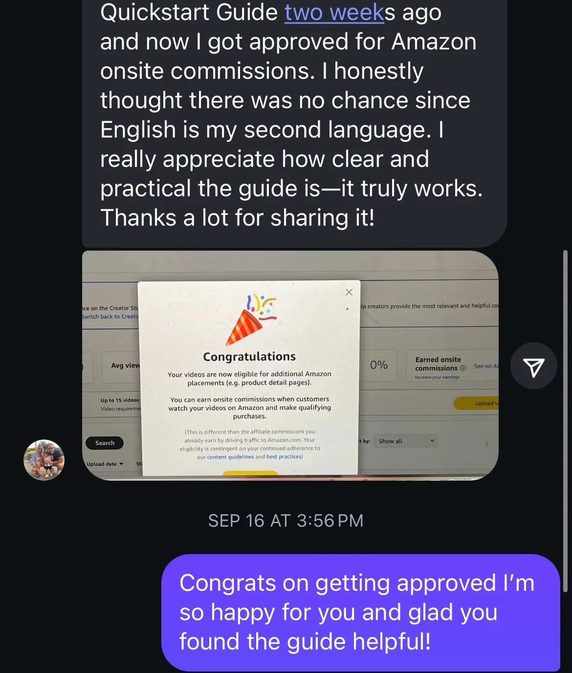 Watch the first module tonight. Apply to Amazon this weekend. Get approved in 24-48 hours. Record your first video. Start seeing income within 2-3 weeks.