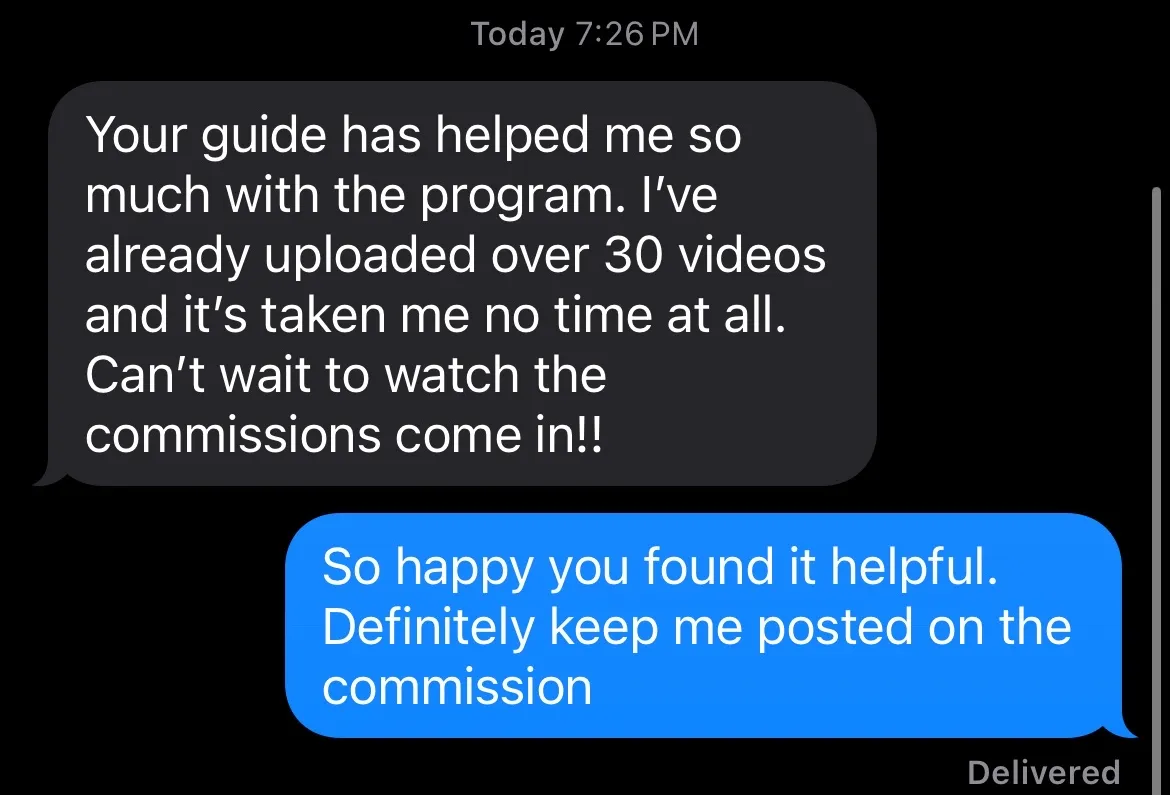 The step-by-step video training that walks you through everything. From submitting your application to recording your first video to scaling past $1,000/month. No fluff. No theory. Just the exact process I used to make $55,000 last year working 6 hours a week.